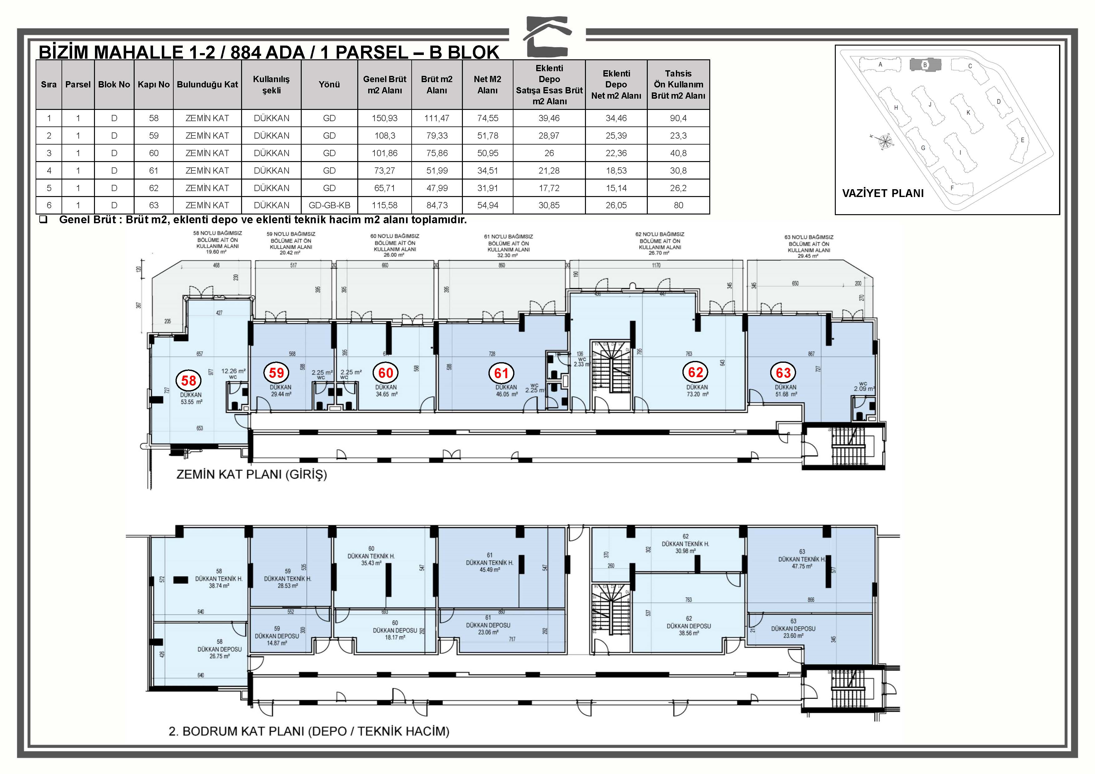 PROJE : BİZİM MAHALLE 1-2 B BLOK 60 NUMARA (DÜKKAN)