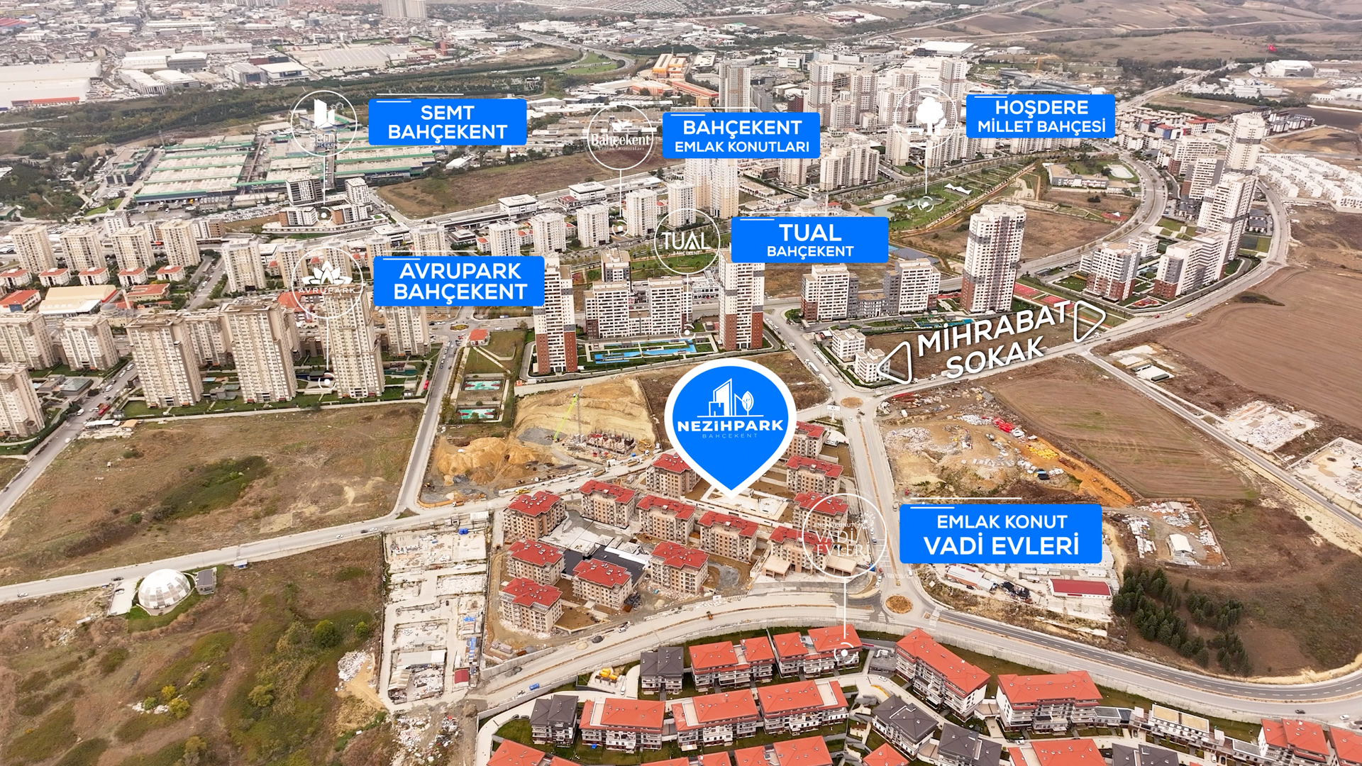 Toplam 1.500 konutluk Emlak Konut Vadi Evleri 1 & 2 ile Nezihpark Bahçekent’in kesiştiği noktada yer alan ticari üniteler.