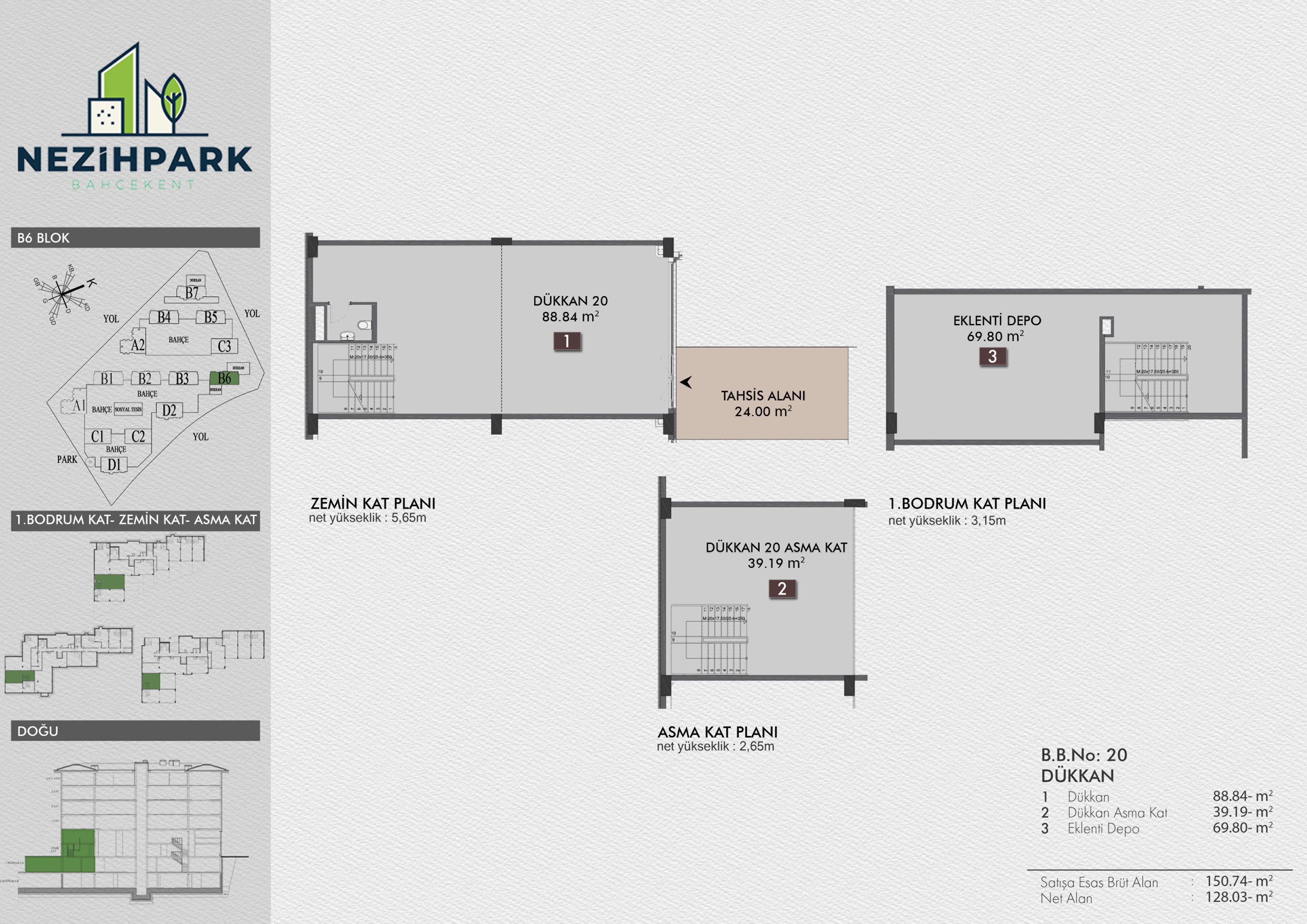 PROJE : NEZİHPARK BAHÇEKENT B6 BLOK 20-21 NUMARALI BAĞIMSIZ BÖLÜMLER (DÜKKAN)