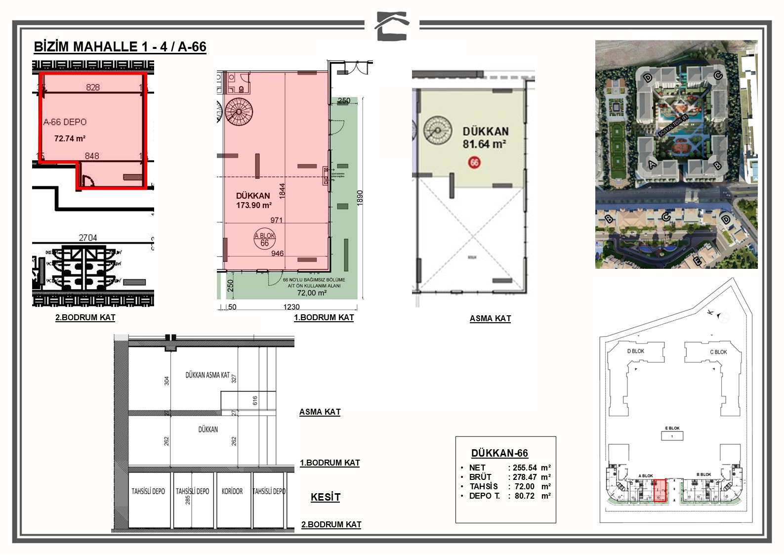 PROJE : BİZİM MAHALLE 1-4 A BLOK 66 NUMARA (ASMA KATLI DÜKKAN)