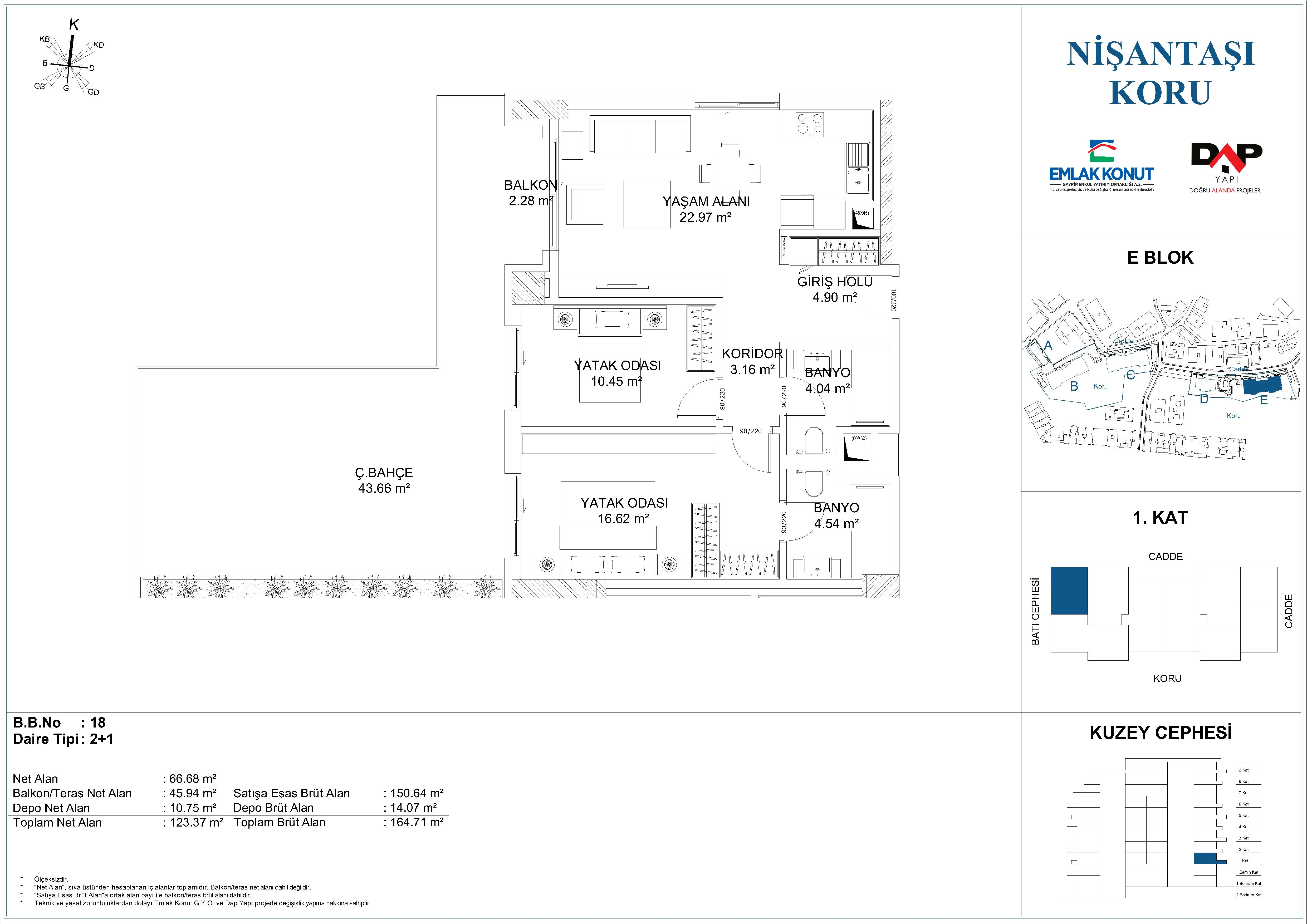 | E BLOK/18 | 150,64 m² | 66,68 m² | 2+1 | 1.KAT | K-B | 1 |