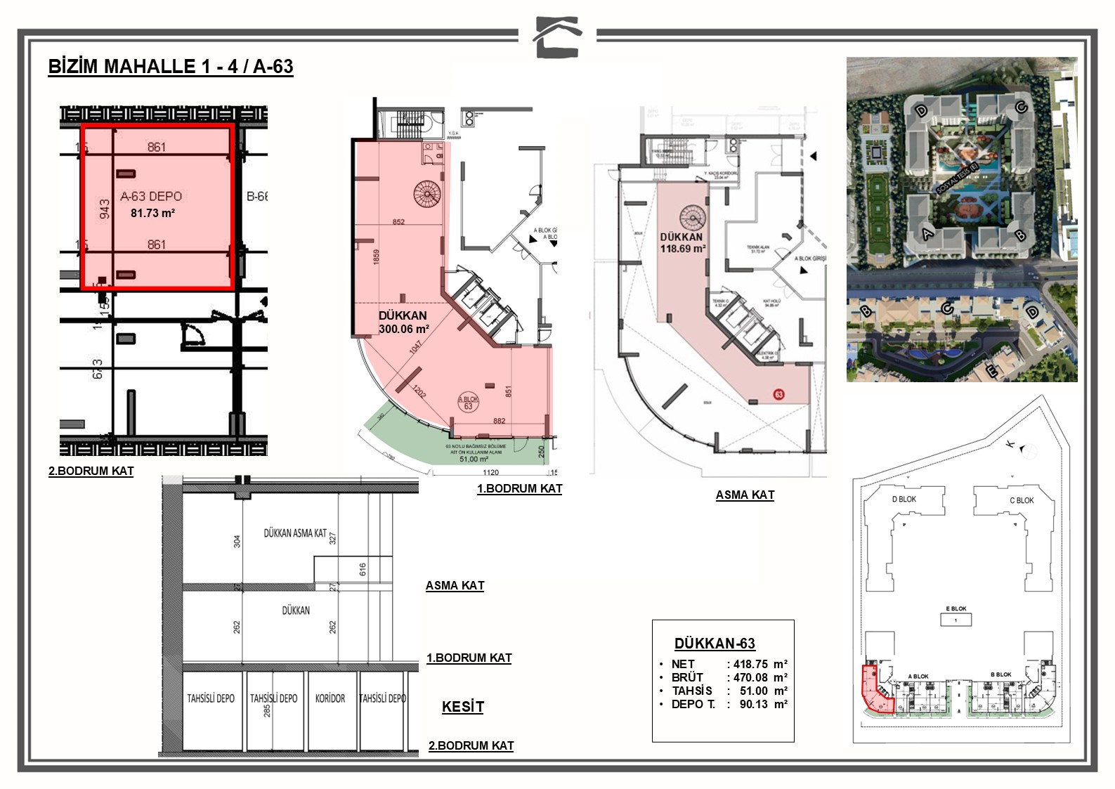 PROJE : BİZİM MAHALLE 1-4 A BLOK 63 NUMARA (ASMA KATLI DÜKKAN)