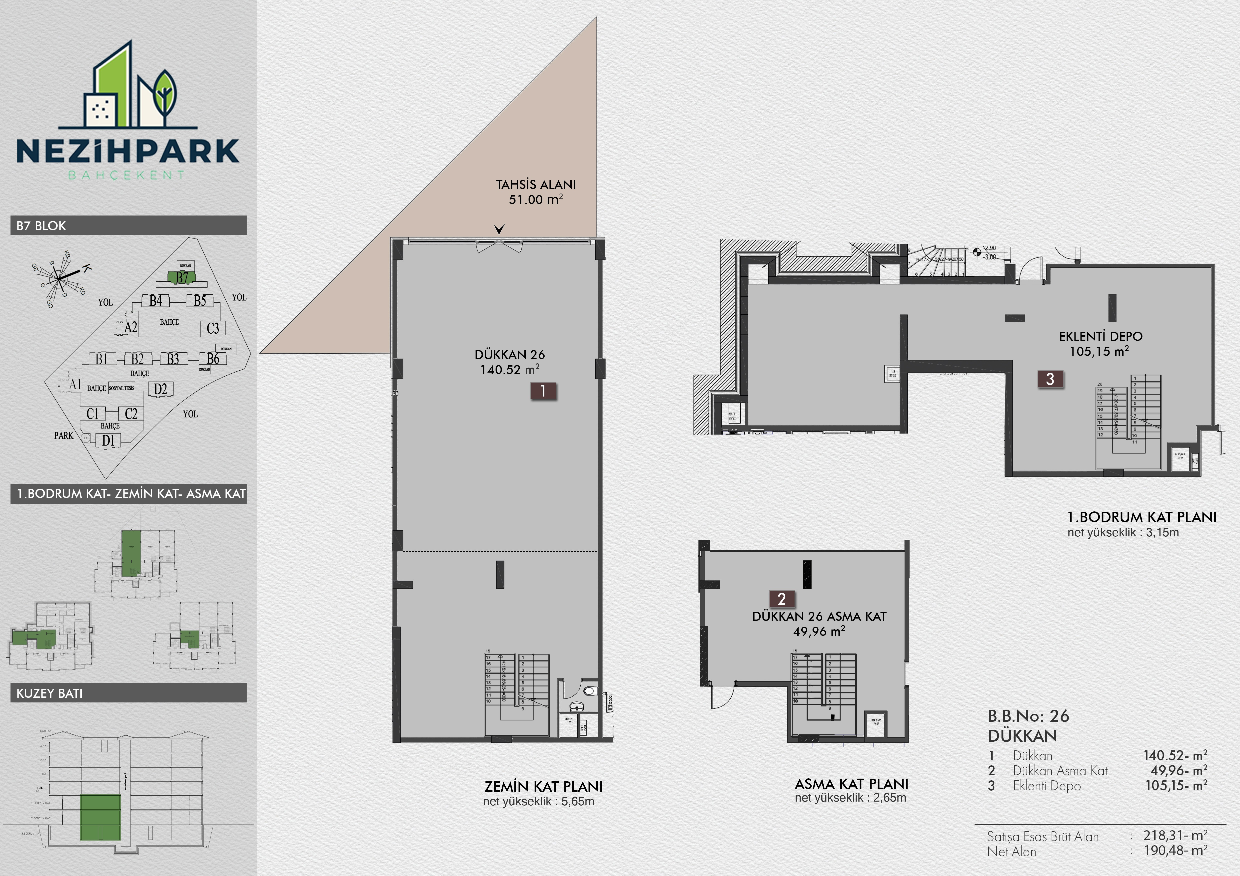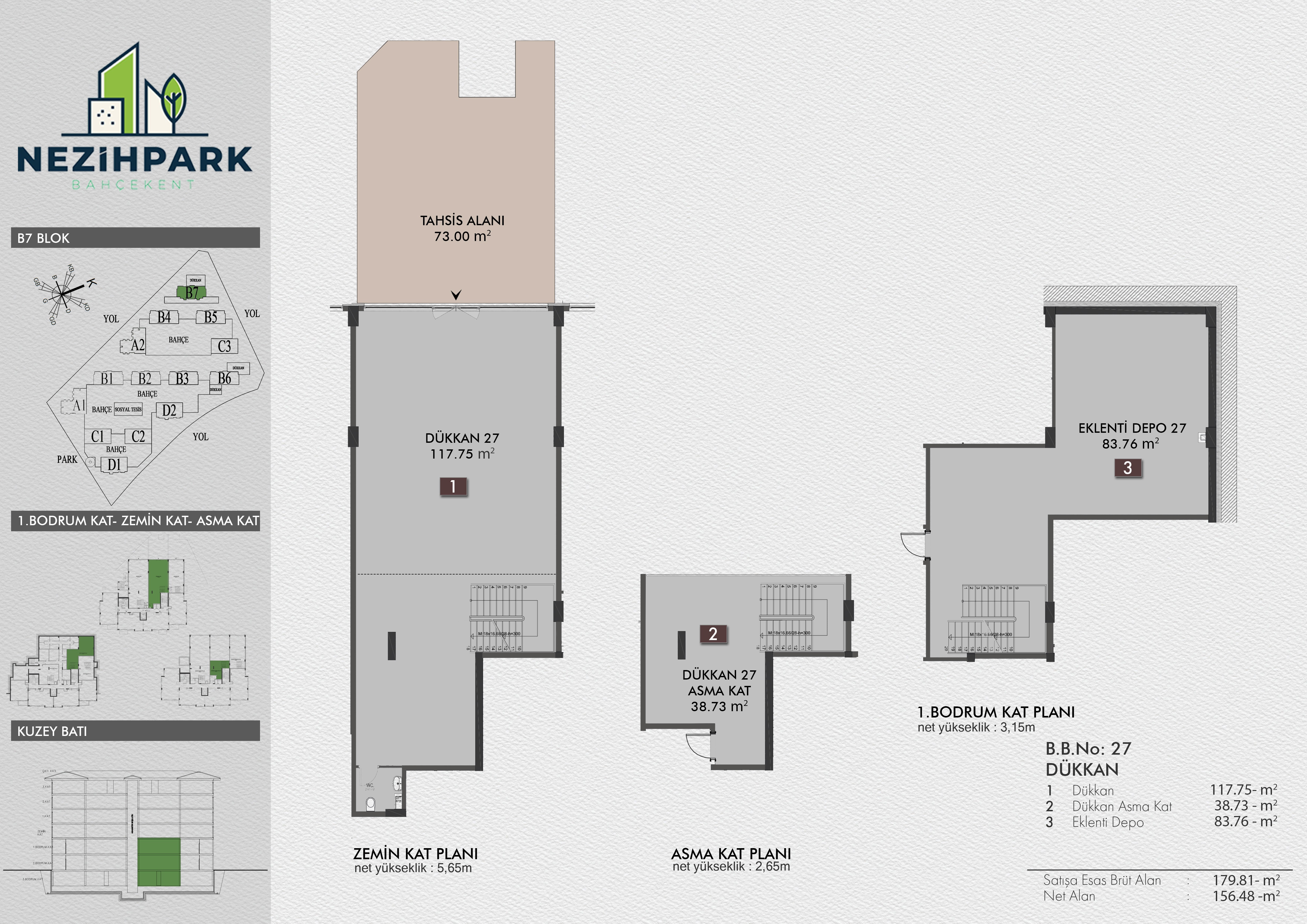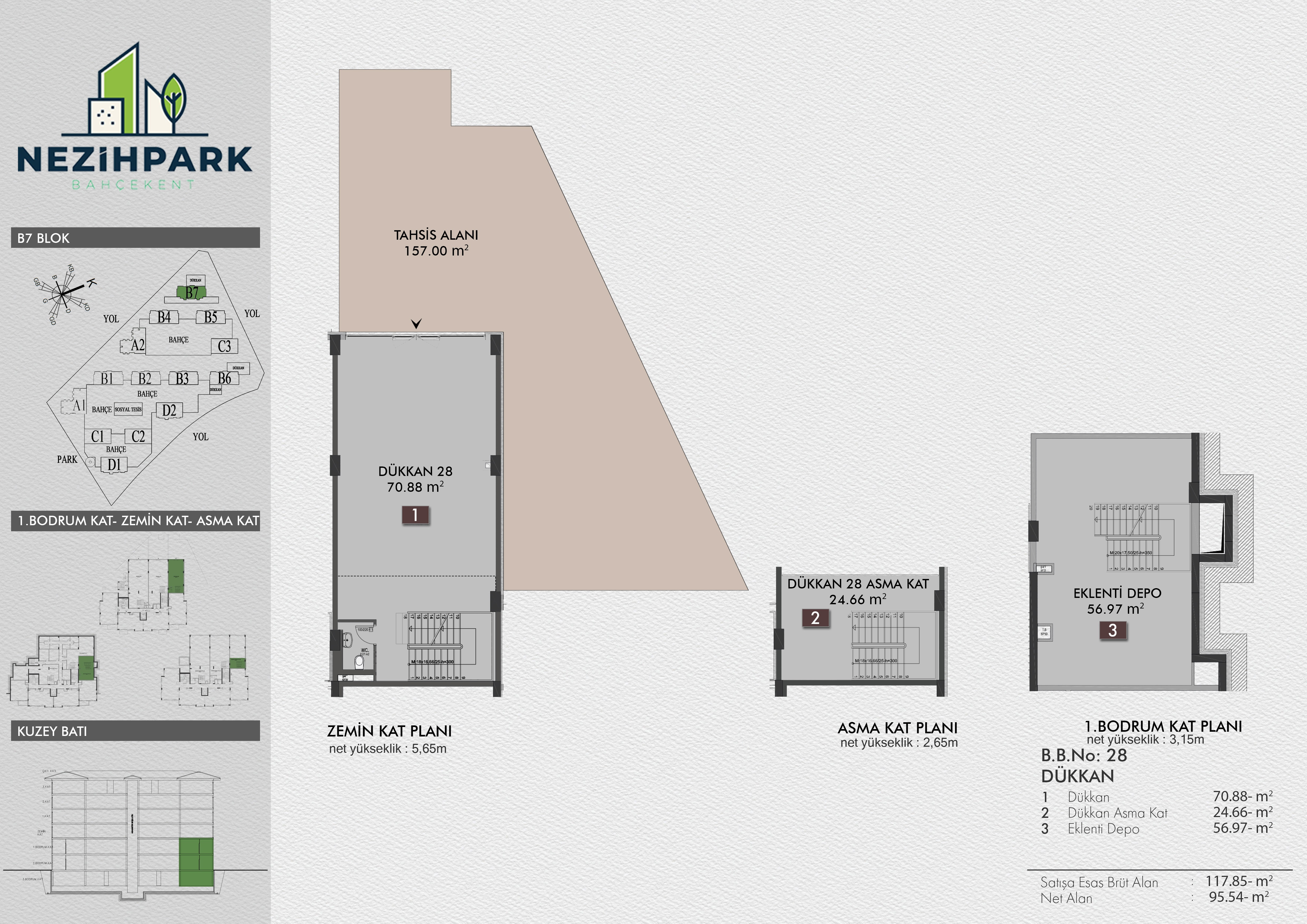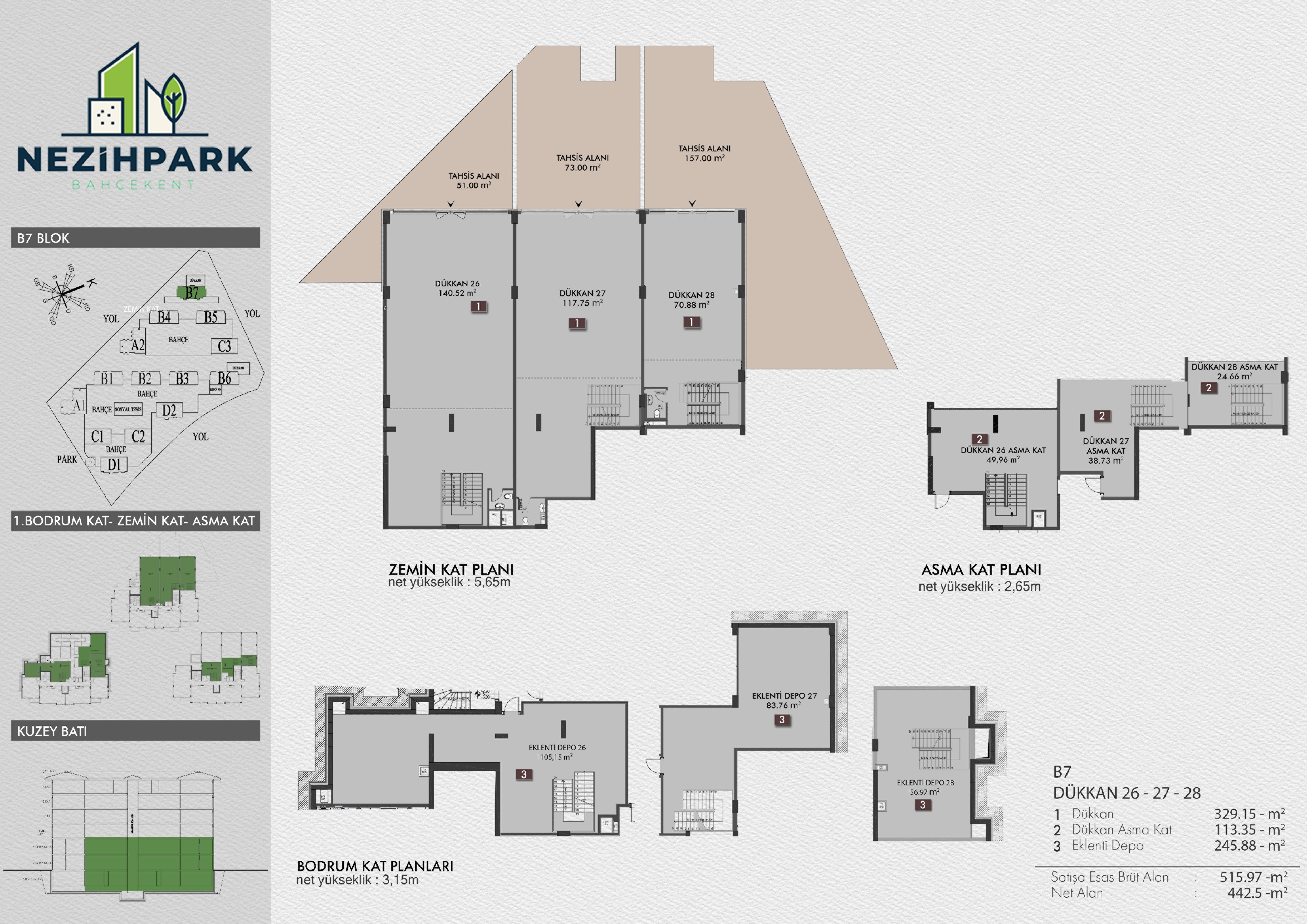 PROJE : NEZİHPARK BAHÇEKENT B7 BLOK 26-27-28 NUMARALI BAĞIMSIZ BÖLÜMLER (DÜKKAN)