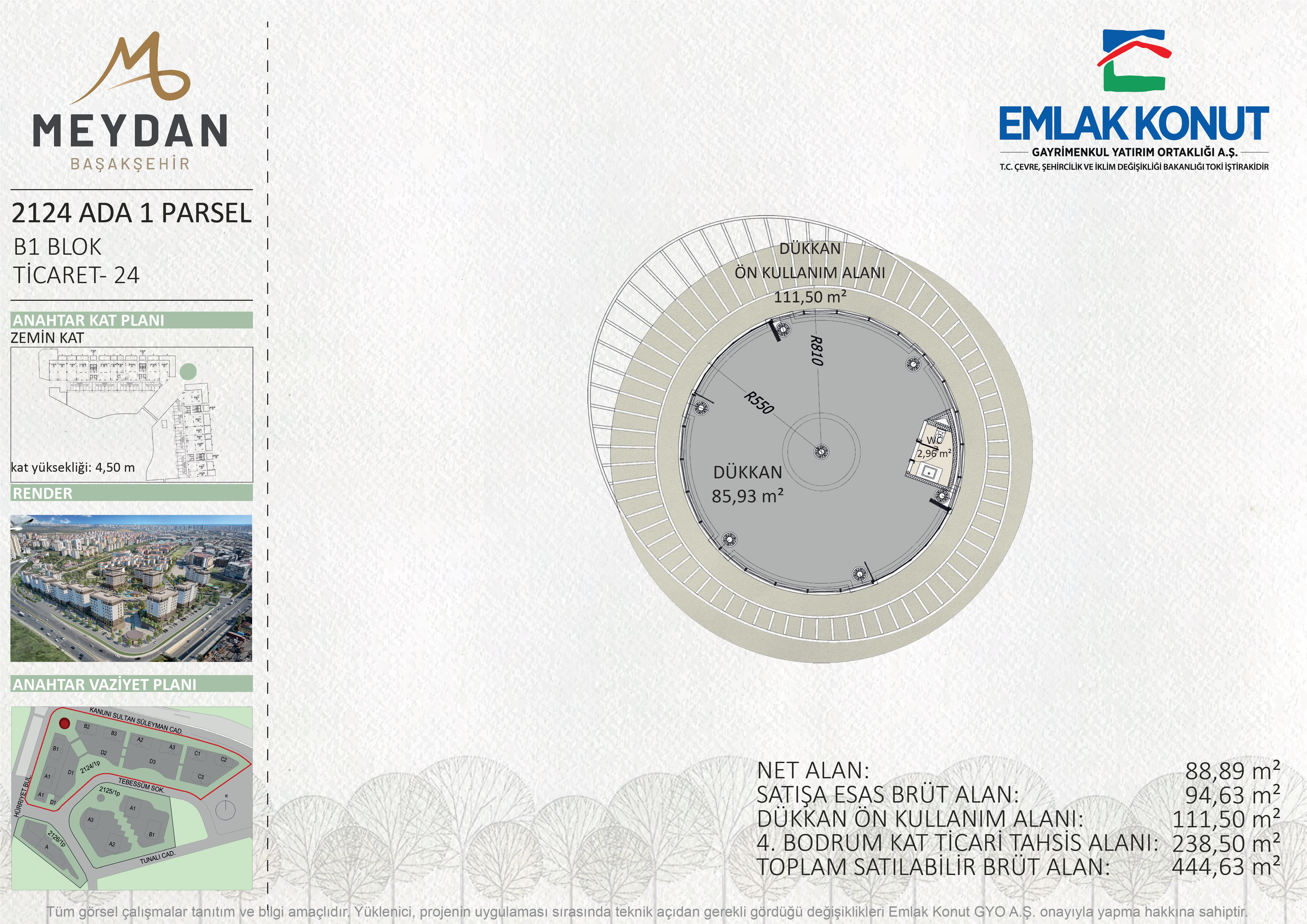 PROJE : MEYDAN BAŞAKŞEHİR 2124 ADA 1 PARSEL B1 BLOK 24 NUMARA (DÜKKAN)
