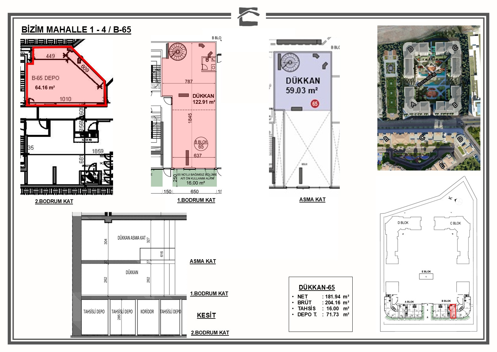 PROJE : BİZİM MAHALLE 1-4 B BLOK 65 NUMARA (ASMA KATLI DÜKKAN)