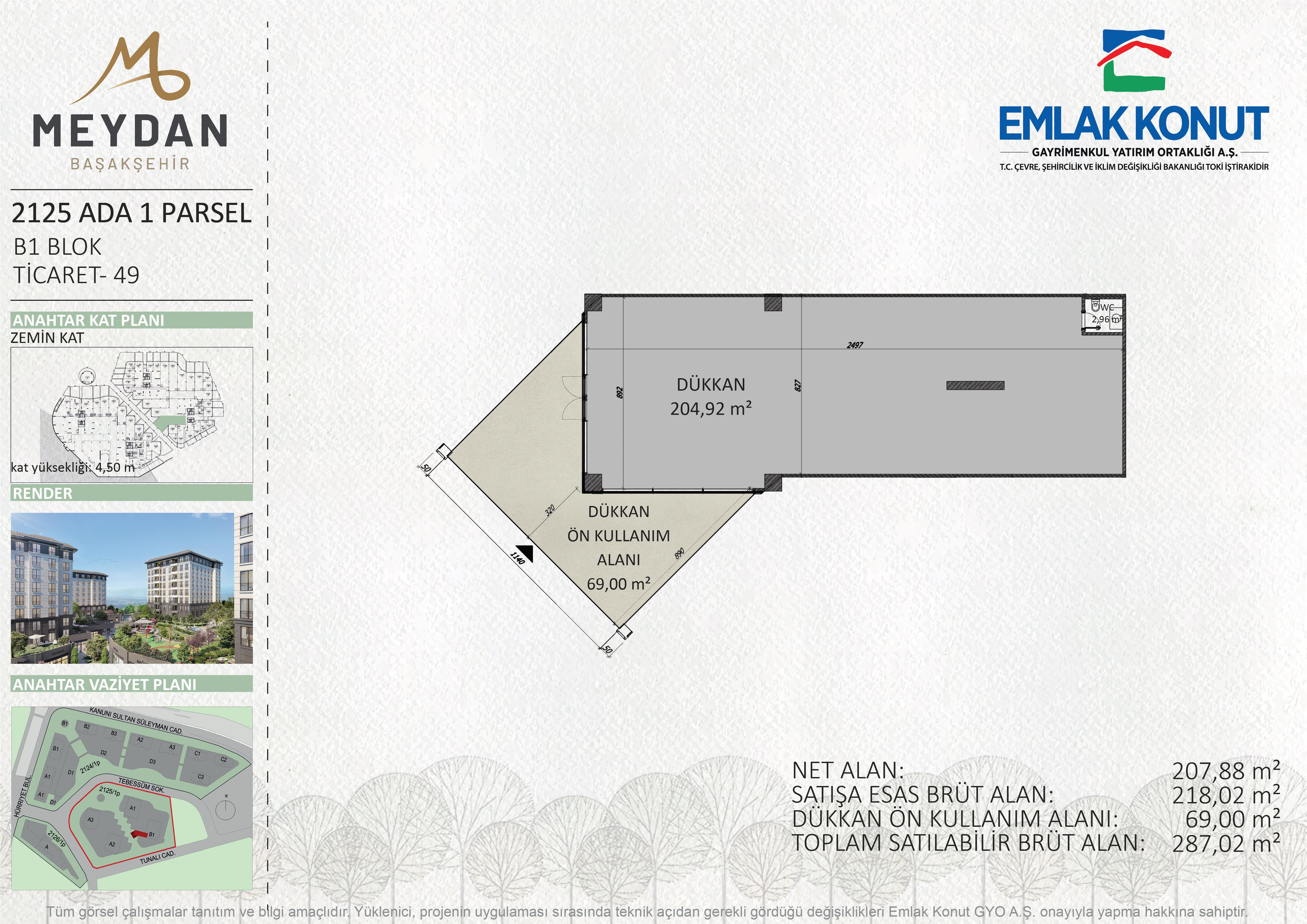 PROJE : MEYDAN BAŞAKŞEHİR 2125 ADA 1 PARSEL B1 BLOK 49 NUMARA (DÜKKAN)