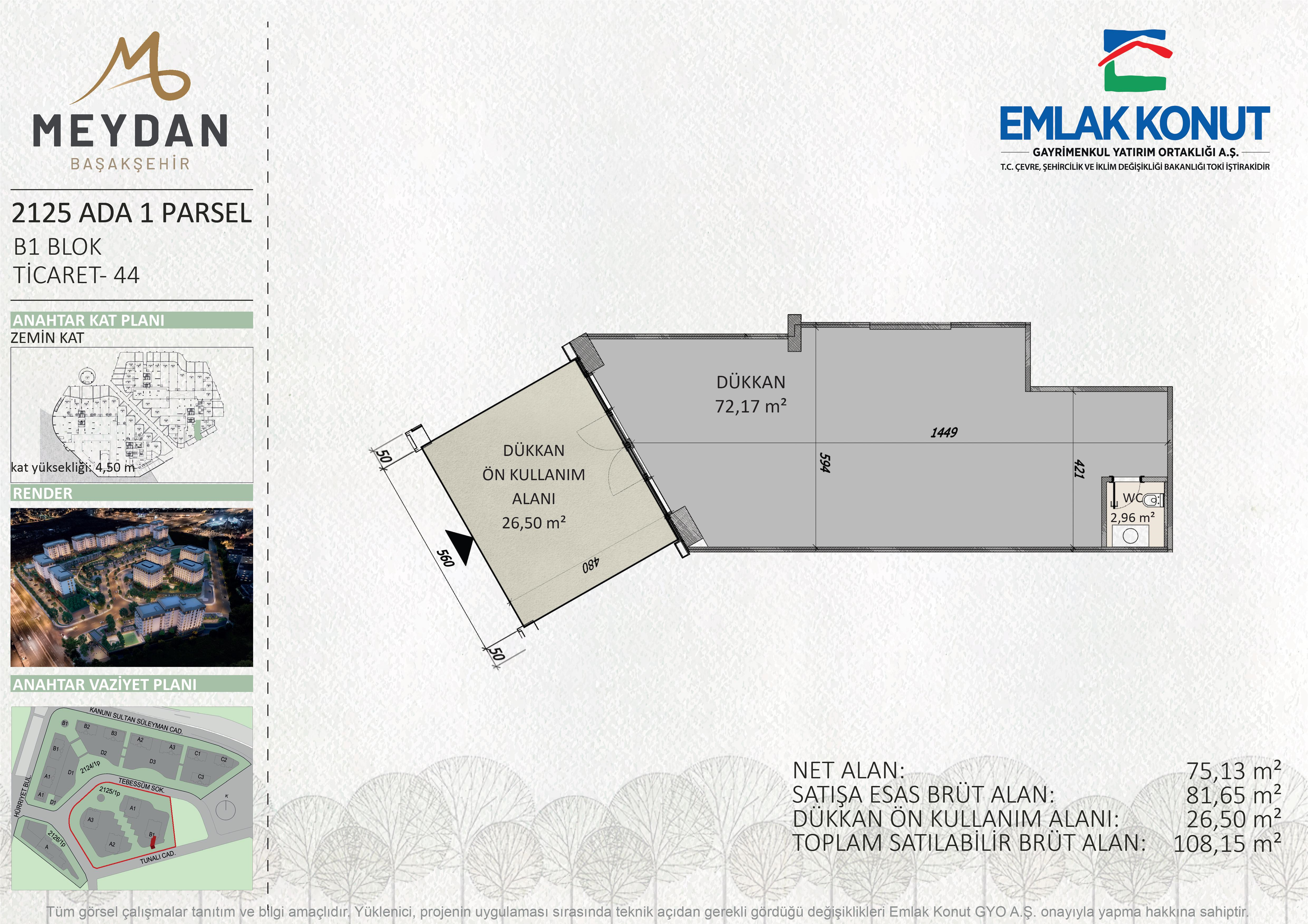 PROJE : MEYDAN BAŞAKŞEHİR 2125 ADA 1 PARSEL B1 BLOK 44 NUMARA (DÜKKAN)