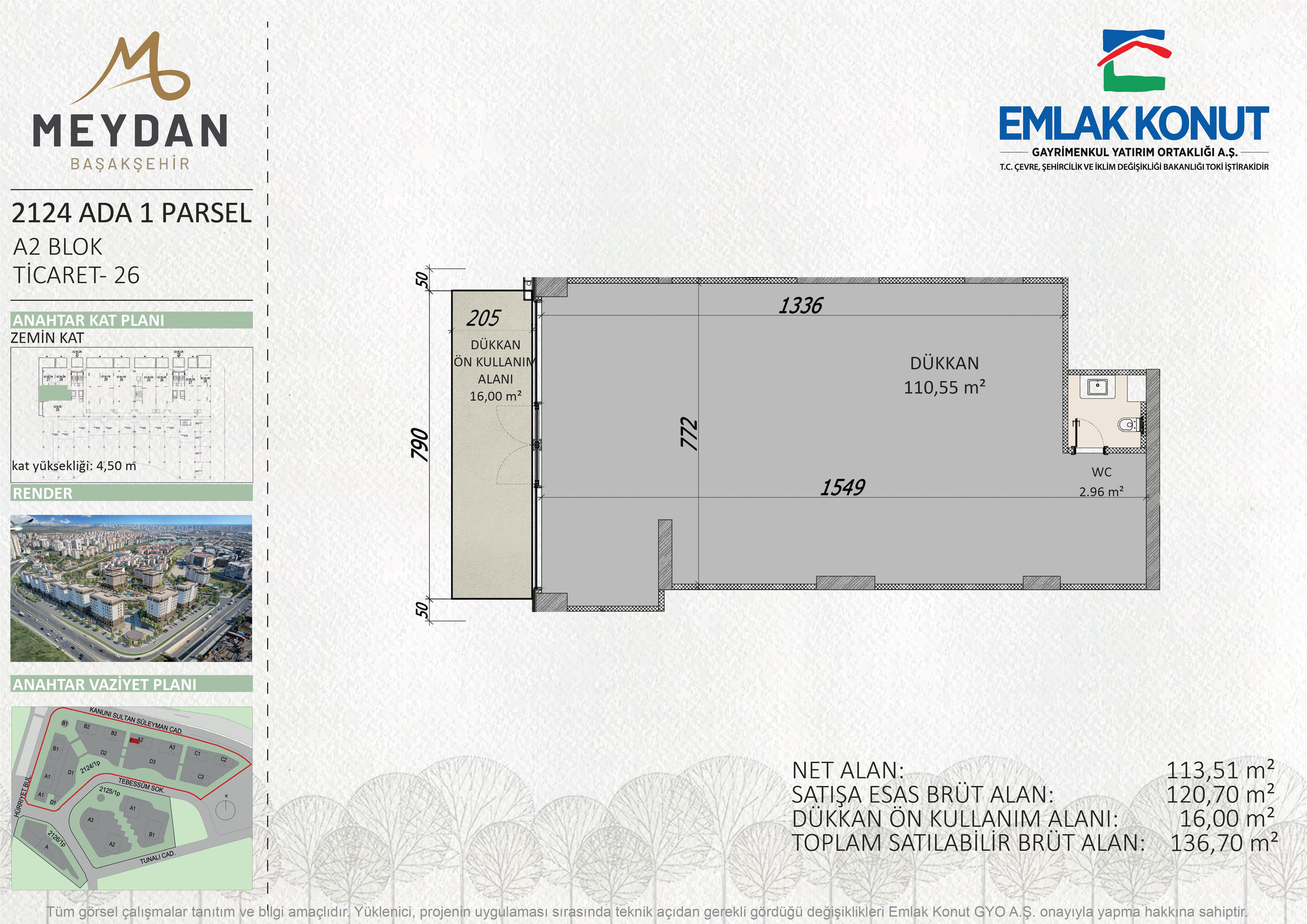 PROJE : MEYDAN BAŞAKŞEHİR 2124 ADA 1 PARSEL A2 BLOK 26 NUMARA (DÜKKAN)